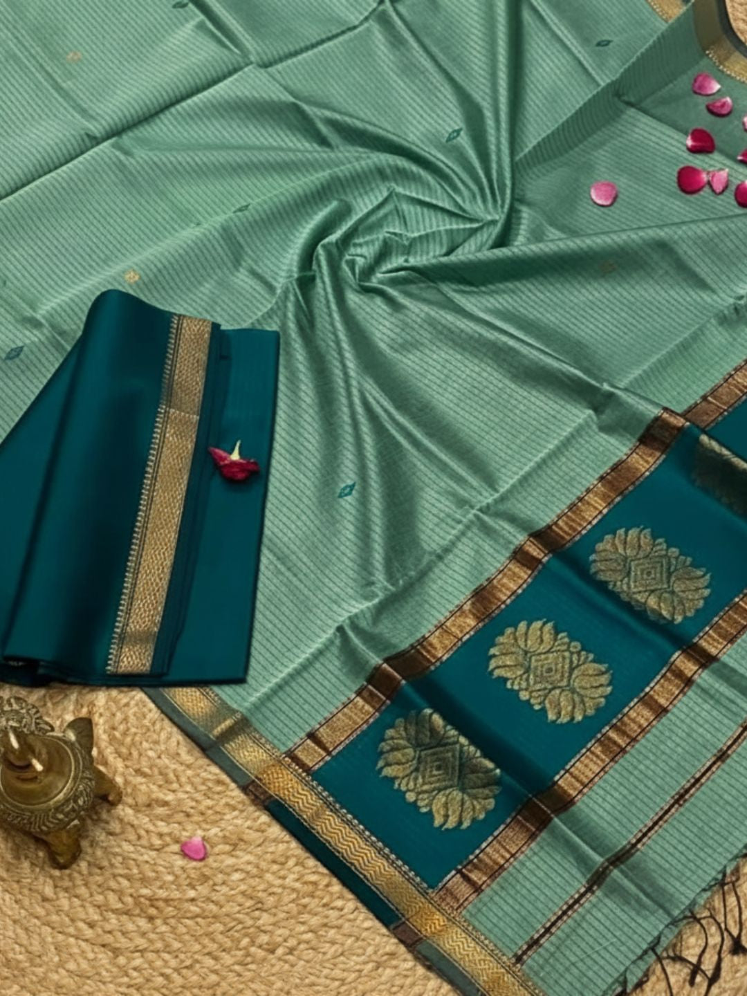 Zari Sutra Maheshwari Silk Teal Green Suit