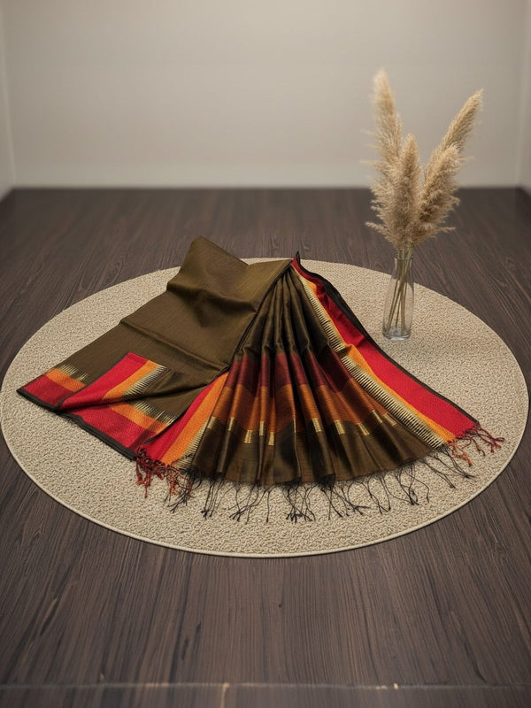 **Maheshwari Silk** is a traditional handwoven fabric from Maheshwar, Madhya Pradesh, known for its luxurious texture and lightweight feel. It blends silk and cotton, offering both shine and comfort. Characterized by intricate zari borders, reversible designs, and geometric or floral motifs, Maheshwari Silk sarees exude timeless grace and royal elegance.